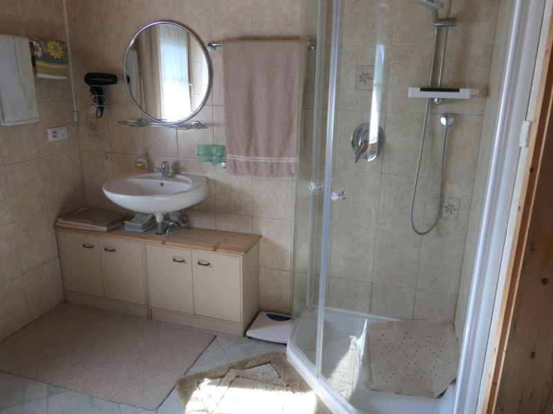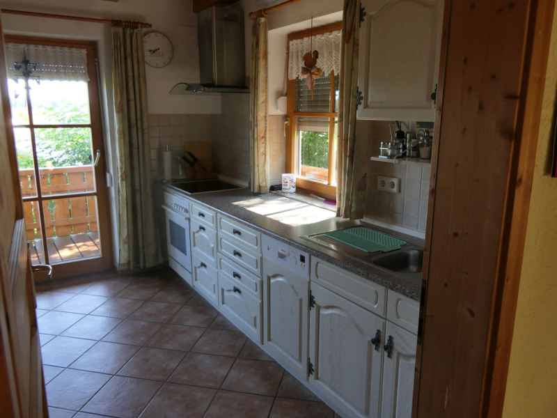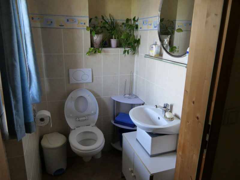 Die Wohnung hat 2 Ebenen, die durch eine Innentreppe verbunden sind. Im Erdgeschoss befindet sich der Wohnbereich (Gesamtwohnfläche EG ca. 65m²): Toilette, Wohnzimmer (ca. 40m²) mit Eckbanksitzgruppe, Polstermöbel-Sitzgruppe und Kachelofen. Küchenzeile mit Elektroherd und Geschirrspüler. Die Südterrasse ist vom Wohnzimmer aus zu erreichen. Umlaufender großer Balkon auf Südost- und Nordostseite (Hanglage).