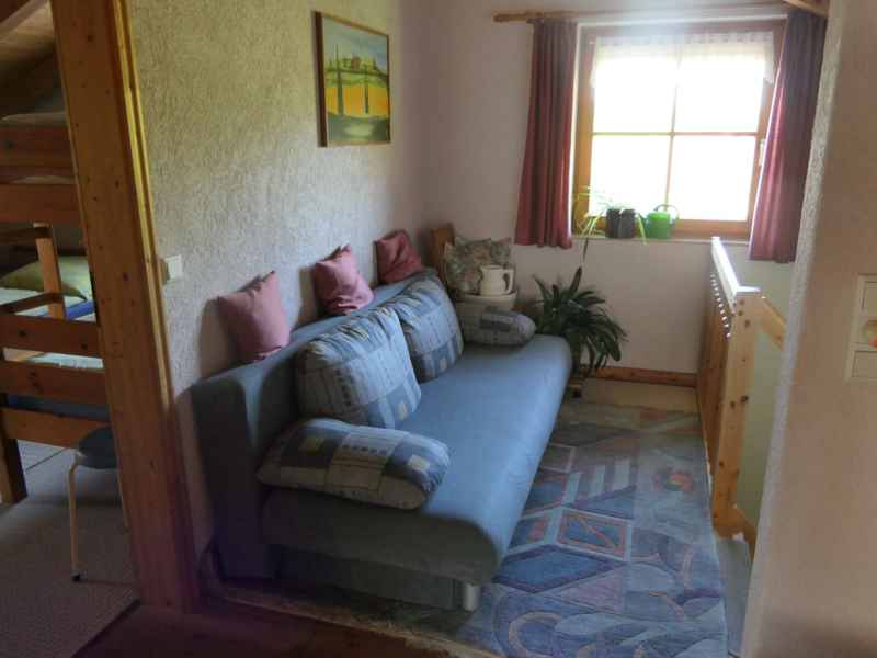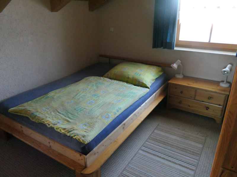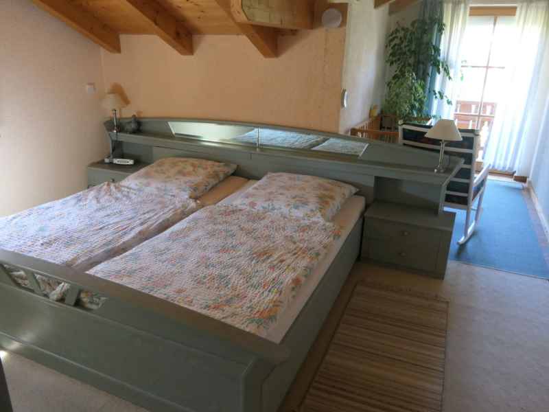 Im Dachgeschoß (ca. 55m² Wohnfläche) befinden sich das Bad mit Dusche, zwei Schlafzimmer mit je ca. 20m²und Südbalkon. Ein Schlafzimmer ist mit einem Doppelbett, das zweite mit einem französischen Bett ausgestattet. Die Gesamtfläche der Wohnung sind ca. 120m².